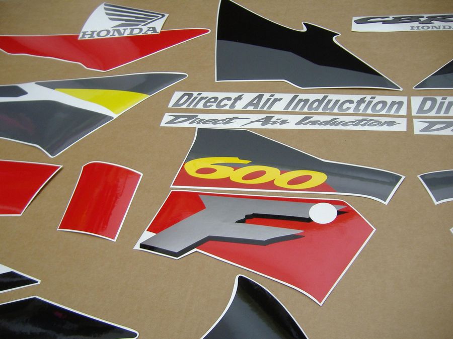 Honda CBR 600 F3 1995 grey/red/yellow version sticker set - this is a complete aftermarket decal set for the grey/red/yellow livery of the model and it includes all the decals for this bike.