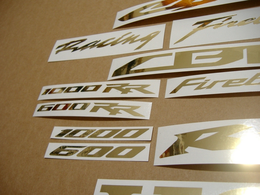 Honda CBR 600RR/1000RR custom chrome gold sticker set - this is a complete aftermarket decal set for the CBR 600RR and 1000RR models.