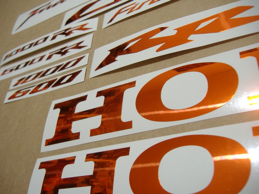 Honda CBR 600RR/1000RR custom chrome (mirror) orange sticker set - this is a complete aftermarket decal set for the CBR 600RR and 1000RR models.