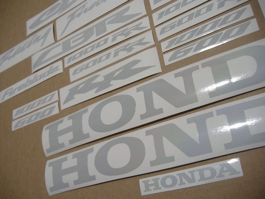 Honda CBR 600RR/1000RR custom reflective white sticker set - this is a complete aftermarket decal set for the CBR 600RR and 1000RR models.