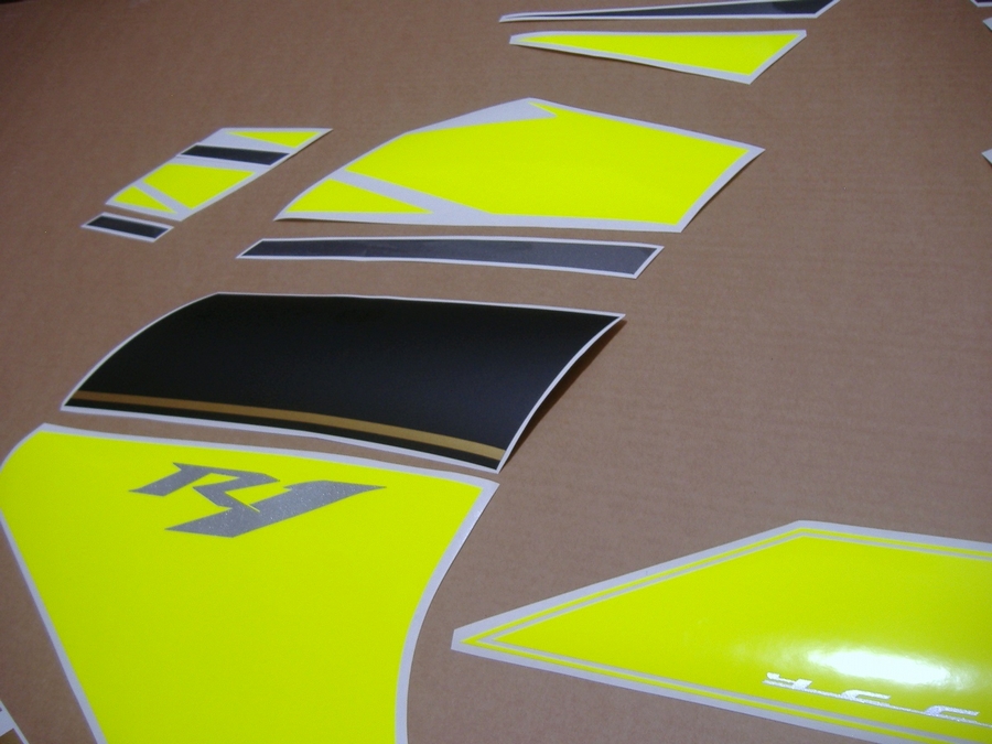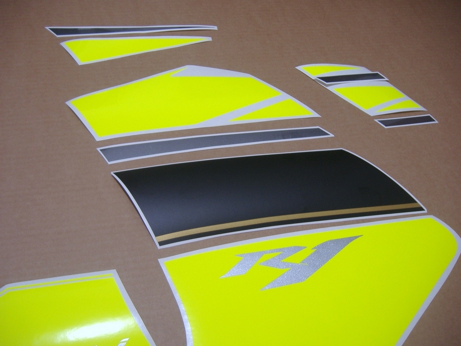Yamaha YZF-R1 custom neon yellow sticker set - this is a complete aftermarket decal set for the 2007-2008 YZF-R1 and it includes all the stickers for this bike.